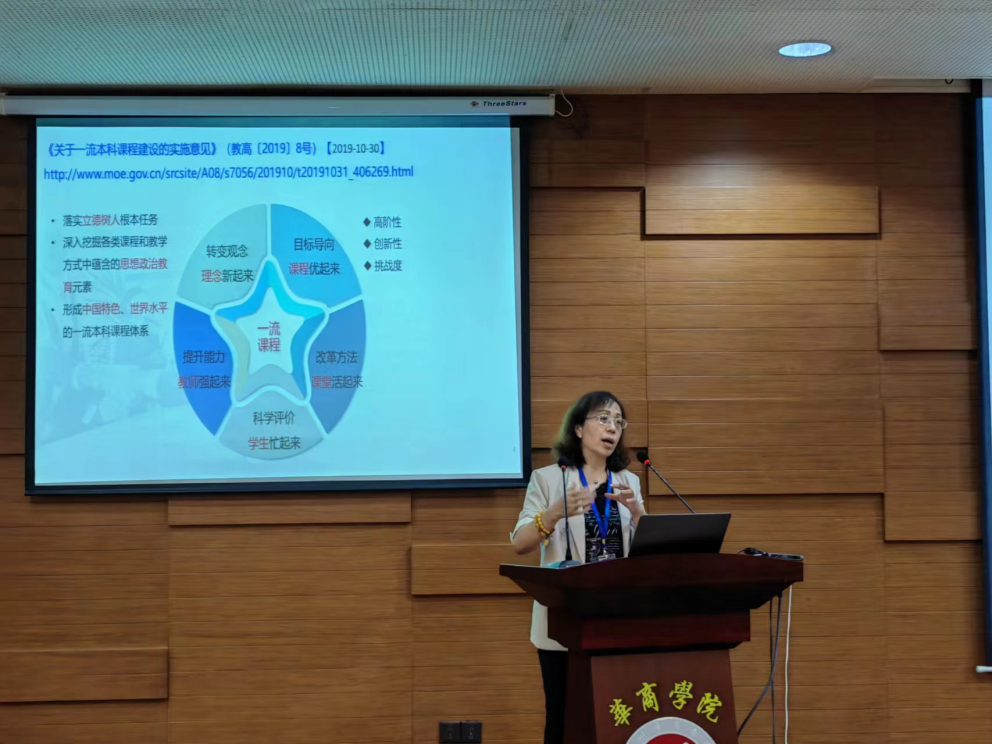 随后,由广东金融学院实验教学中心主任王小燕教授以“虚拟仿真实验助力一流课程建设”为主题进行经验分享,她从国家级一流课程建设概况、国家虚拟仿真一流实验课程的建设以及虚拟仿真实验课程的应用三大方面进行阐述,强调教师要深入挖掘各类课程和教学方式中蕴含的思想政治教育元素,并形成中国特色、世界水平的一流本科课程体系,同时,她还通过图文并茂的方式展示了贵校虚拟仿真实验课程的课程内容与建设情况,使各位同行专家更深刻地了解会计学国家级一流课程建设的现状。最后,她分享了虚拟仿真一流课程申报的申报要求,为各位专家提供了宝贵的借鉴经验。