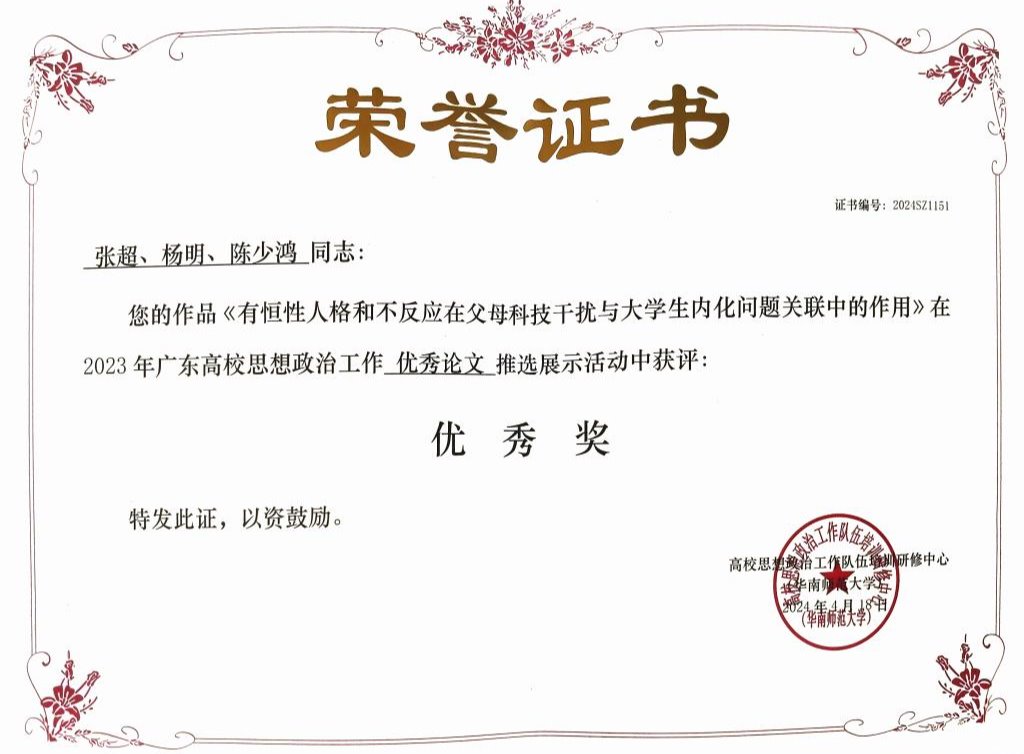 《有恒性人格和不反应在父母科技干扰与大学生内化问题关联中的作用》 |