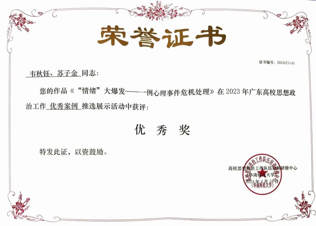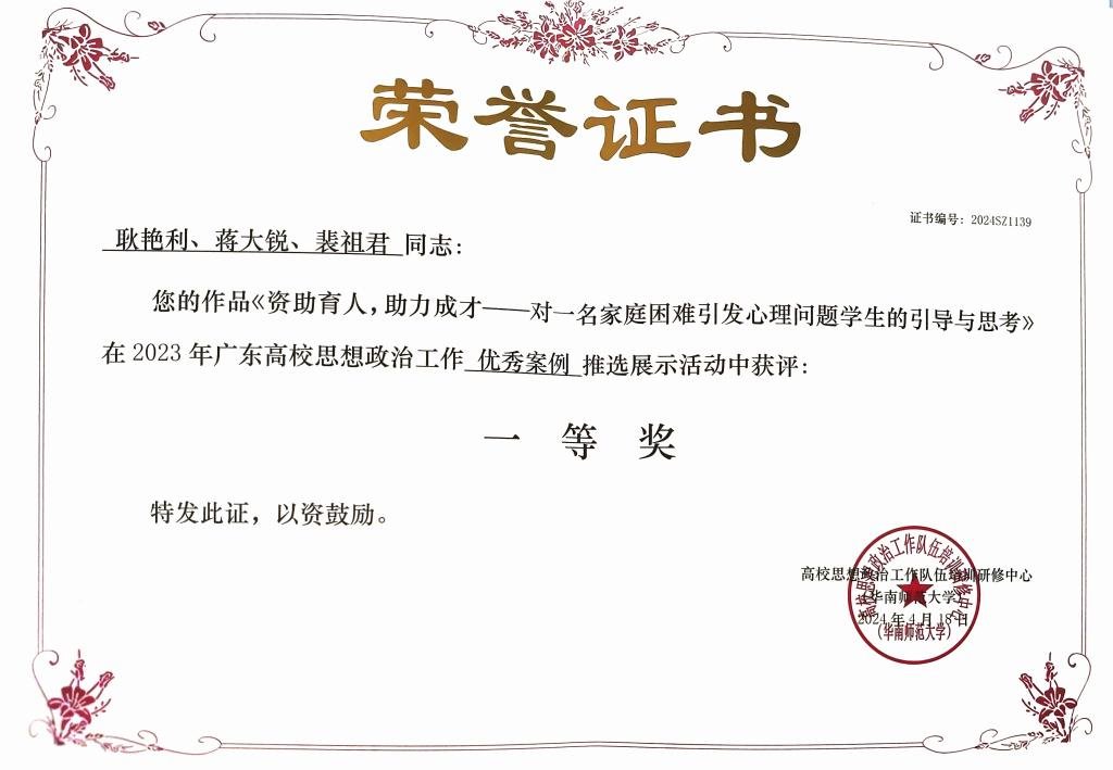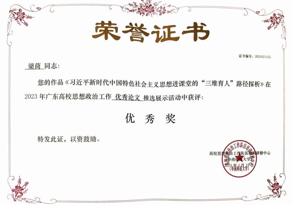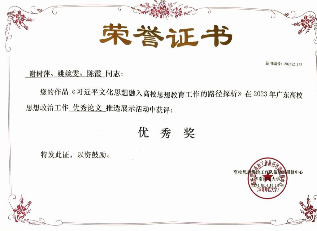 近日,2023年广东高校思想政治工作优秀论文、优秀案例、教学视频以及原创文化精品推选展示活动结果公布。我校推优报送的多项学工队伍优秀作品在本次比赛中获奖。其中,工作案例获奖10篇、工作论文获奖11篇、原创文化精品获奖1首、教学视频获奖2部。