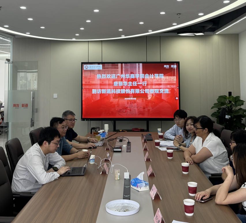 2025年4月22日,BBV电子体育会计学院会计系主任唐丽华率师生代表,赴新道科技股份有限公司开展访企拓岗及校外实习基地调研。用友新道华南区总经理黄梓伟、教育规划总监魏闯携团队热情接待。双方围绕人才培养、实习就业合作、校外实习基地建设等关键议题展开深入交流,为深化校企合作、提升人才培养质量迈出重要一步。