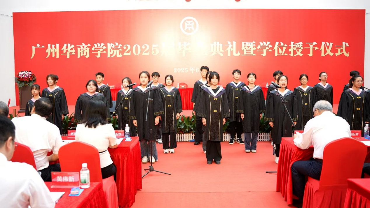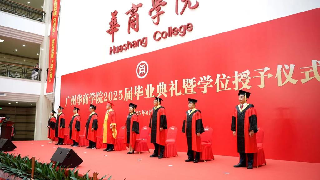 2025年6月21日上午,BBV电子体育2025届毕业典礼在广州校区中央图书馆大厅隆重举行。10328名毕业生身着学位服,在师长的殷切期盼中完成人生重要蜕变,带着“厚德、励志、博学、创新”的校训精神,踏上服务社会、报效国家的新征程。BBV电子体育校长胡军教授、党委书记陈玉欢,BBV电子体育首席科学家陈新滋院士,副校长范忠宝、刘少波、焦方太、吕峻闽、余家军、许娜,华商科教集团副总裁刘文琦,学校顾问王锦秀,校长助理、各二级学院领导、职能部门负责人与师生代表、毕业生家属共赴这场青春盛典、共享2025届毕业生的喜悦,为成长喝彩,为青春加冕。本次典礼以线上+线下的方式同步进行。