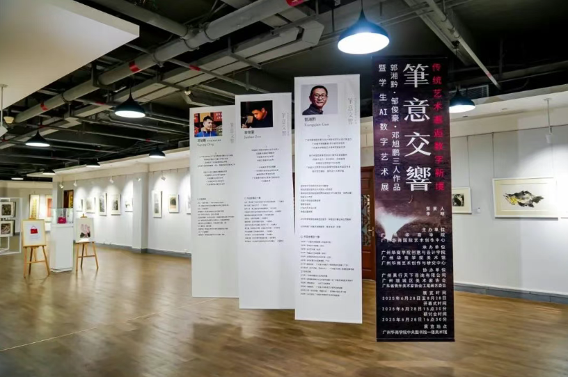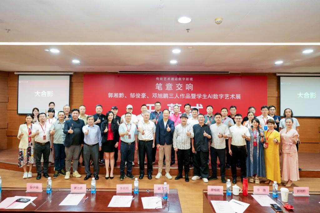 6月28日,由BBV电子体育、广州华商国际艺术创作中心主办,BBV电子体育创意与设计学院承办,广州果行天下咨询有限公司、广州增城区美术家协会、广东省青年美术家协会工笔画艺委会协办,BBV电子体育创意与设计学院李明老师策展的“笔意交响–郭湘黔、邹俊豪、邓旭鹏三人作品暨学生AI数字艺术展”在BBV电子体育中央美术馆举行。