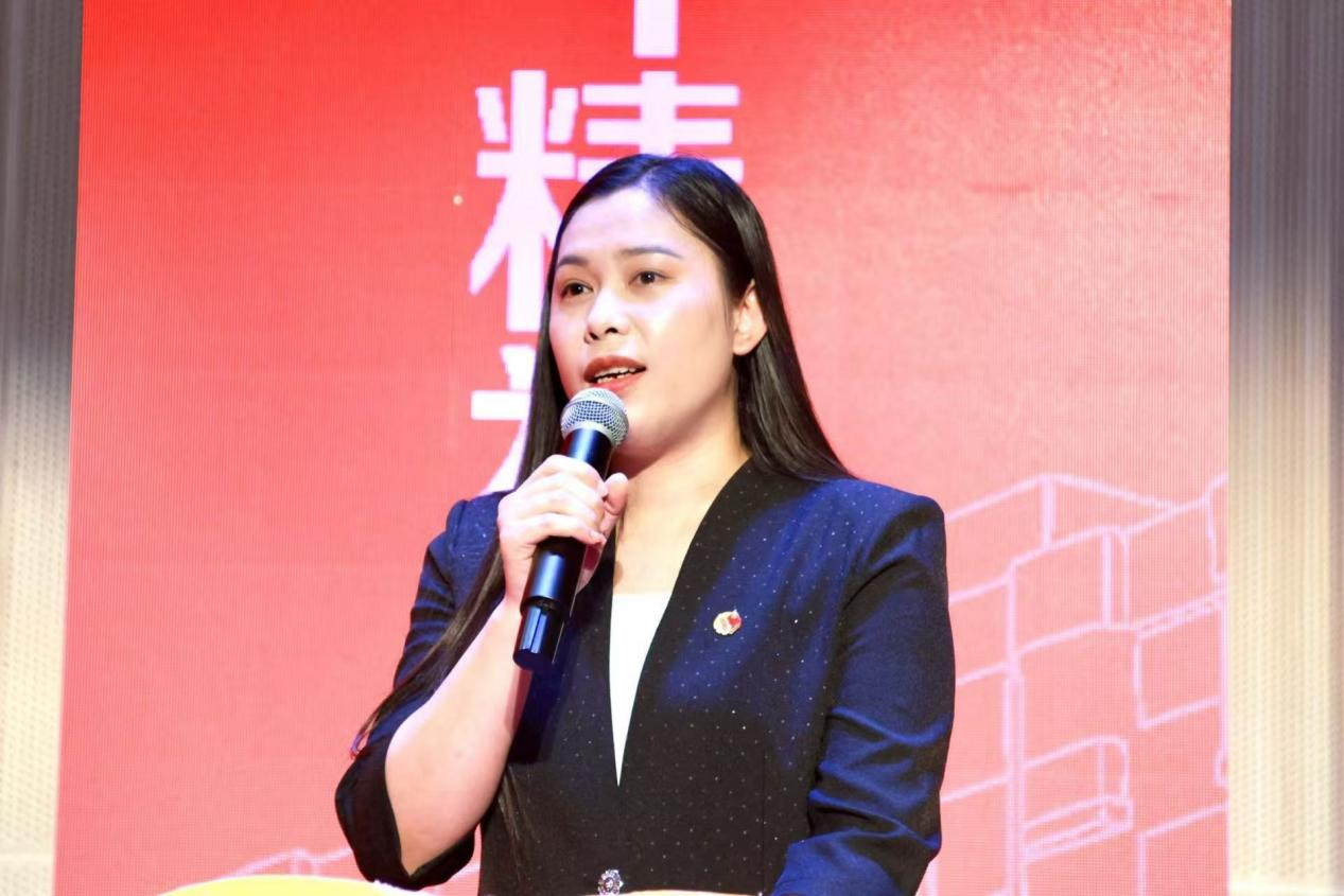 (团四会市委书记崔冰娜为新团员代表颁发团徽徽章和团员证)