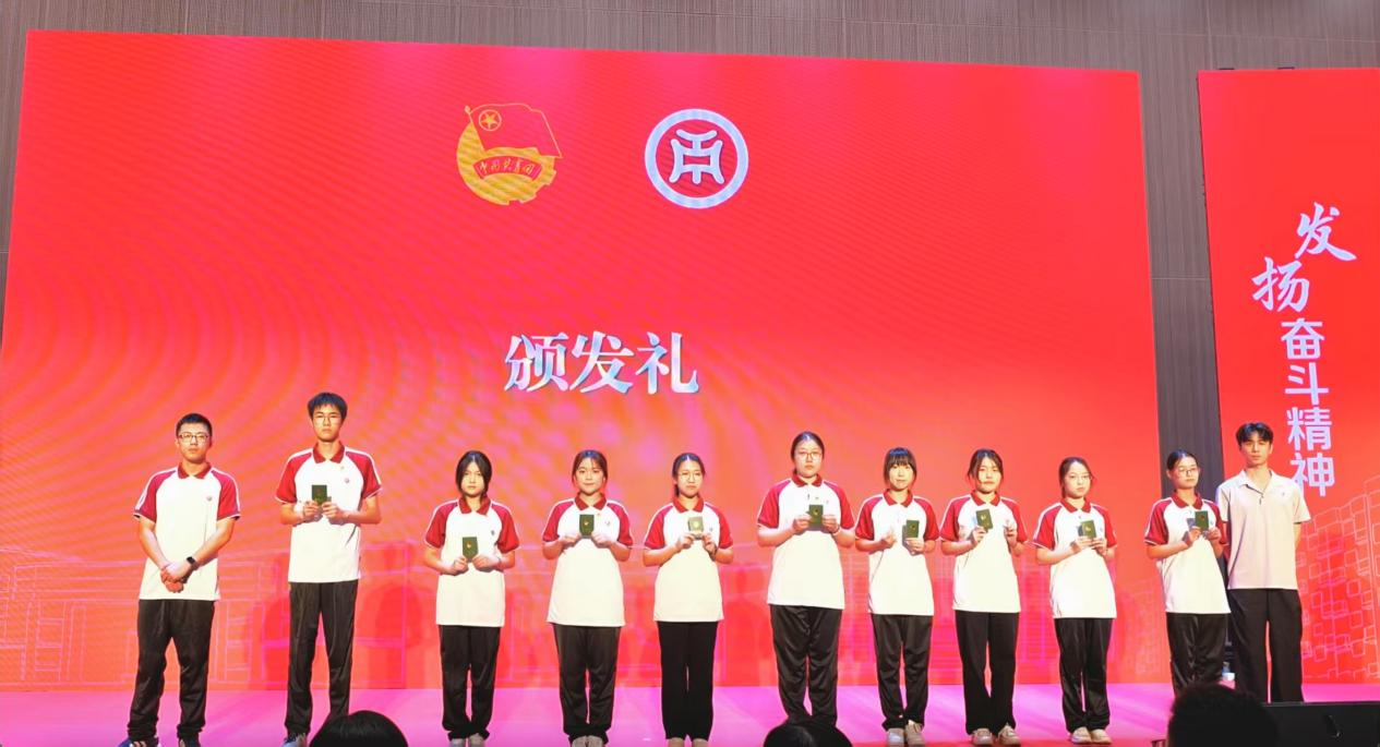 团四会市委书记崔冰娜致辞。她首先代表团四会市委对我校新团员的加入表示祝贺,向辛勤培育团员青年的老师们致以崇高的敬意。崔书记表示,作为新时代的共青团员,站在青春征程的新起点,肩负着时代的期许与组织的信任。她对新团员提出三点希望和要求:一、与党同心,做新时代的有志青年。深入学习习近平新时代中国特色社会主义思想,不断学习党的创新理论,以更高标准严格要求自己;二、与时代同行,做新时代的有才青年。努力掌握科学文化知识与专业技能,不断提高自身综合素质,努力成为有本领、有才华的社会主义建设者和接班人;三、与人民同行,做新时代的有为青年。希望各位团员以勇于担当的精神和敢于作为的魄力,发挥先锋模范作用,积极参与四会基层治理,将服务人民作为青春奋斗的目标。