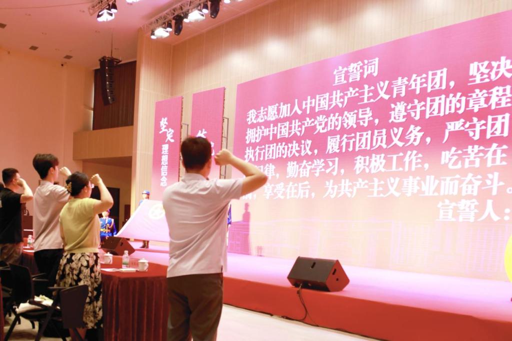 校团委杨伟捷老师带领新团员们进行入团宣誓。