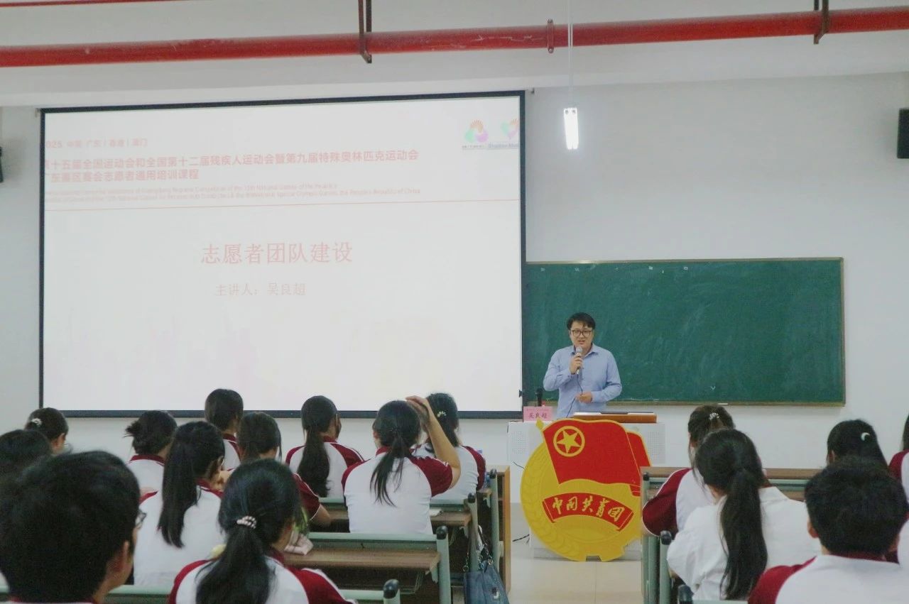 为深入学习贯彻习近平总书记关于志愿服务的重要论述和系列重要指示批示精神,切实提升志愿者服务水平,助力十五运会和残特奥会顺利开展,我校团委于2025年4月19日-22日在肇庆校区组织开展十五运会和残特奥会广东赛区肇庆分赛区预录用赛会志愿者培训会,共计216名预录用志愿者参加本次培训会。此次培训共设置九门课程,从政治教育到通用知识,再到服务技能,全方位提升志愿者的综合素质,激励广大青年志愿者积极投身社会服务,为赛事成功举办与社会发展奉献青春力量。