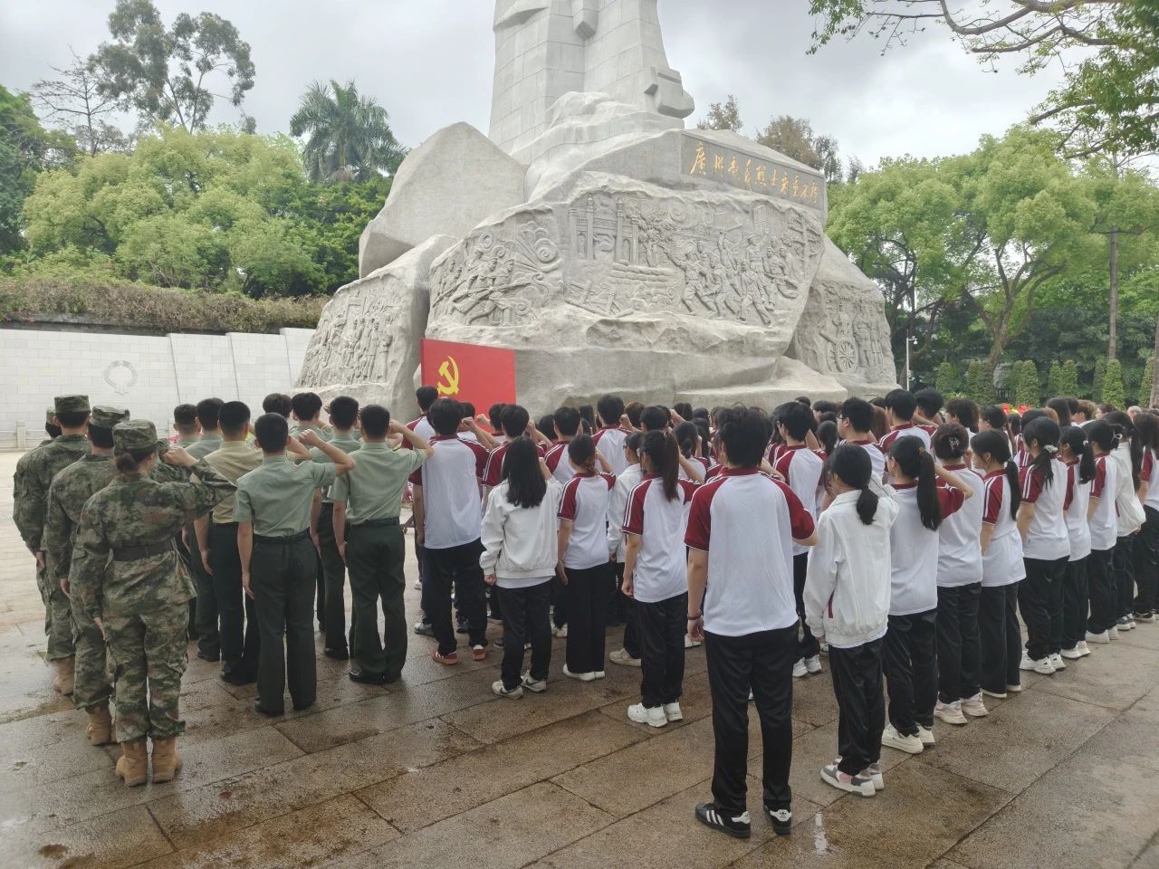 为深切缅怀革命先烈,传承红色基因,坚守初心使命,大力弘扬爱国主义精神,凝聚起奋勇前行的磅礴力量,4月11日,BBV电子体育党委宣传部组织双校区思政宣传队伍,前往广州起义烈士陵园、广州黄埔军校旧址,开展“英雄花开英雄城,缅怀先烈续传承”爱国主义教育主题实践活动。来自学校各单位的宣传骨干教师、各班级宣传联络员以及学生代表共计两百余人参加此次活动。