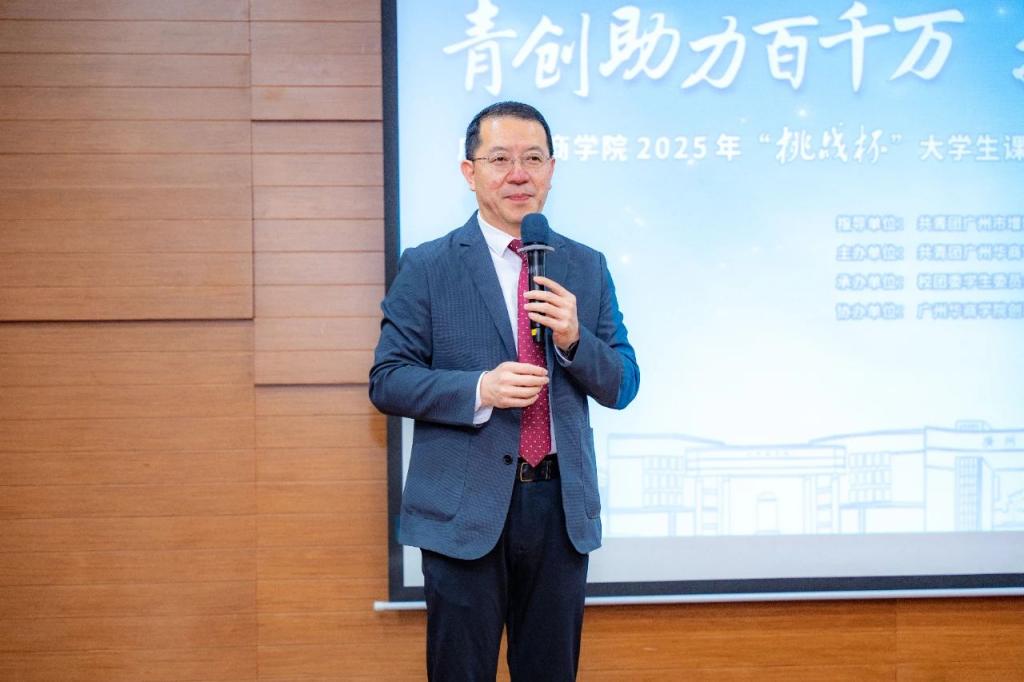 吕峻闽副校长作总结讲话。他向入围决赛的团队表示祝贺,并对支持我校双创教育的各方表达感谢。随后,用当今社会热点和趋势、引用习近平总书记在十四届全国人大三次会议上的讲话,强调了教育、科技、人才的重要性。他强调,近年来,学校始终将“创新型人才培养”作为教育教学改革的重要任务,积极响应国家创新驱动发展战略和团省委对青年科创工作的号召。他很欣慰看到同学们将课堂所学转化为解决实际问题的方案,用智慧与热情回应时代课题,更对华商青年的未来充满信心。他鼓励大家以此次竞赛为新起点,保持进取心,勇立潮头,争做创新先锋,在省赛、国赛中赛出水平、赛出风格,为学校双迎工作、为粤港澳大湾区建设贡献青春智慧。