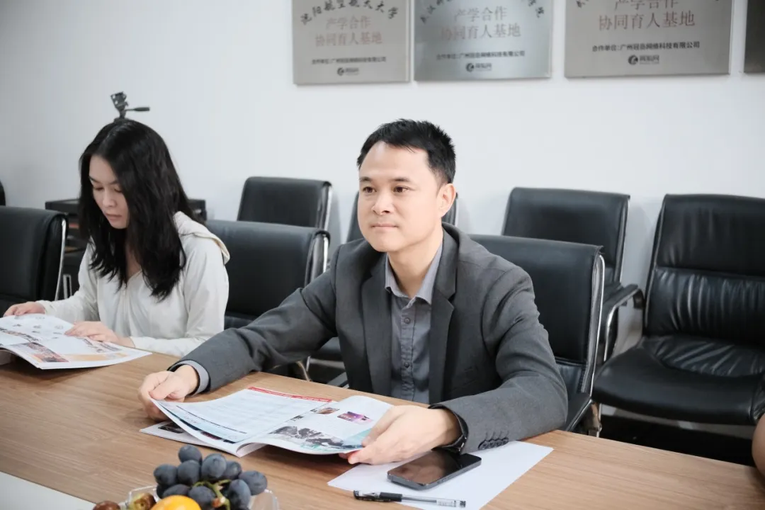 座谈会上,广州冠岳网络科技有限公司CEO谢啟雄详细介绍了公司发展概况、核心业务、用人需求等。他表示,希望与学校达成紧密合作,通过学生研学、实习实践、主题讲座等方式建立长效机制,利用公司平台优势帮助学校优化教育资源和教学方法,同时为学生提供更多实践和学习机会。
