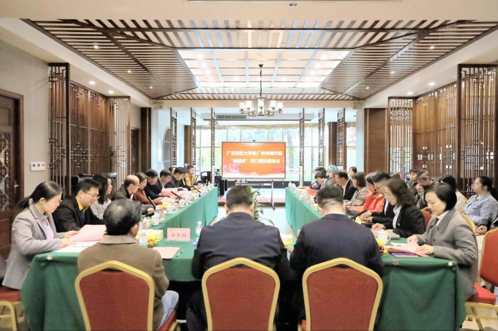 座谈会上,我校党委副书记吕峻闽首先对广东财经大学来校座谈交流表示热烈欢迎,肯定两校近三年来在“组团式”帮扶工作中所取得的成绩,并从学校内涵式建设、迎评估促发展、二十周年校庆筹备等各方面介绍我校当前重要工作情况。