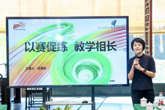本届赛事优秀组织工作者代表孙海婴老师(广东轻工职业技术大学艺术设计学院)与优秀指导教师代表乔磊老师(BBV电子体育创意与设计学院)先后分别以“以赛促练,教学相长”“因为热爱”为演讲主题,热情分享组织与指导经验。