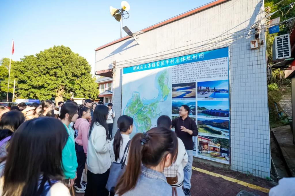 最后,研学团前往正果镇蒙花布村进行参观调研,高心亮书记、高新村长为研学团作“蒙花布村乡村运营”主题分享,讲述了村庄悠久的历史文化,村庄通过打造3A级景区村落、强化整村运营管理、发展乡村产业新业态等方式创建典型村的具体路径。随后,带领研学团成员观光万里碧道、正果拦河坝、碧水银滩、乌榄园等地,让研学团成员实地感受乡村的自然风光、生态环境和文化底蕴,进一步理解乡村振兴战略下的乡村发展新模式。