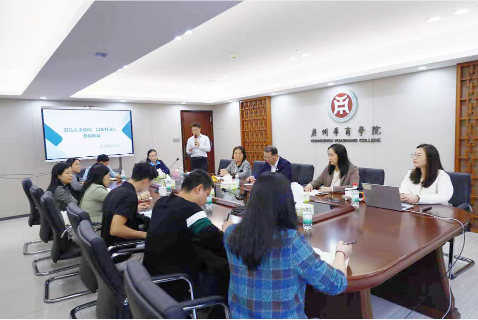 为提升学校法治水平,构建和谐校园文化,促进学校高质量发展,2024年12月5日下午,我校举行以“以案释法与新规解读”为主题的法律讲座。学校副校长吕峻闽、学校顾问支戈壁出席讲座。讲座由学校法律顾问、广东华进律师事务所覃丽律师团队主讲,各单位人事秘书、各学院辅导员代表、学校法务、学生处代表及人事处、教师发展中心全体同志参加了会议。讲座由人事处处长彭强主持。