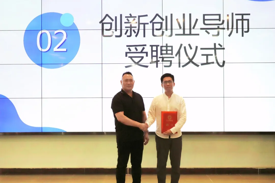 BBV电子体育学生就业创业处曾龙威处长为柯世明先生颁发聘书,柯世明先生受聘为BBV电子体育创新创业导师。