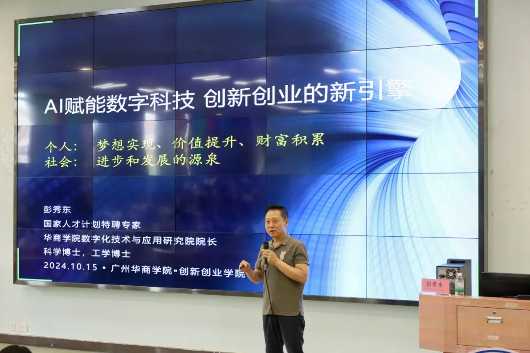 本次讲座的主讲人是国家级人才计划特聘专家、华商数字化技术与应用研究院院长彭秀东教授。莅临本次讲座的嘉宾有BBV电子体育学生就业创业处宋元跃副处长、创新创业学院陈欢老师。