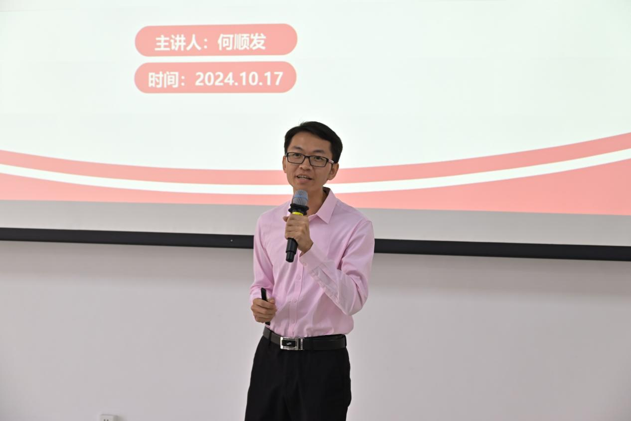 随后,何顺发老师围绕“以人为本,以爱为根,助力新生顺利融入大学生活”的主题进行了精彩分享。他认为,辅导员应当成为学生心灵的引导者和成长的助力者,通过细致入微的关怀和专业的指导,帮助新生快速适应大学环境,培养独立思考和解决问题的能力。