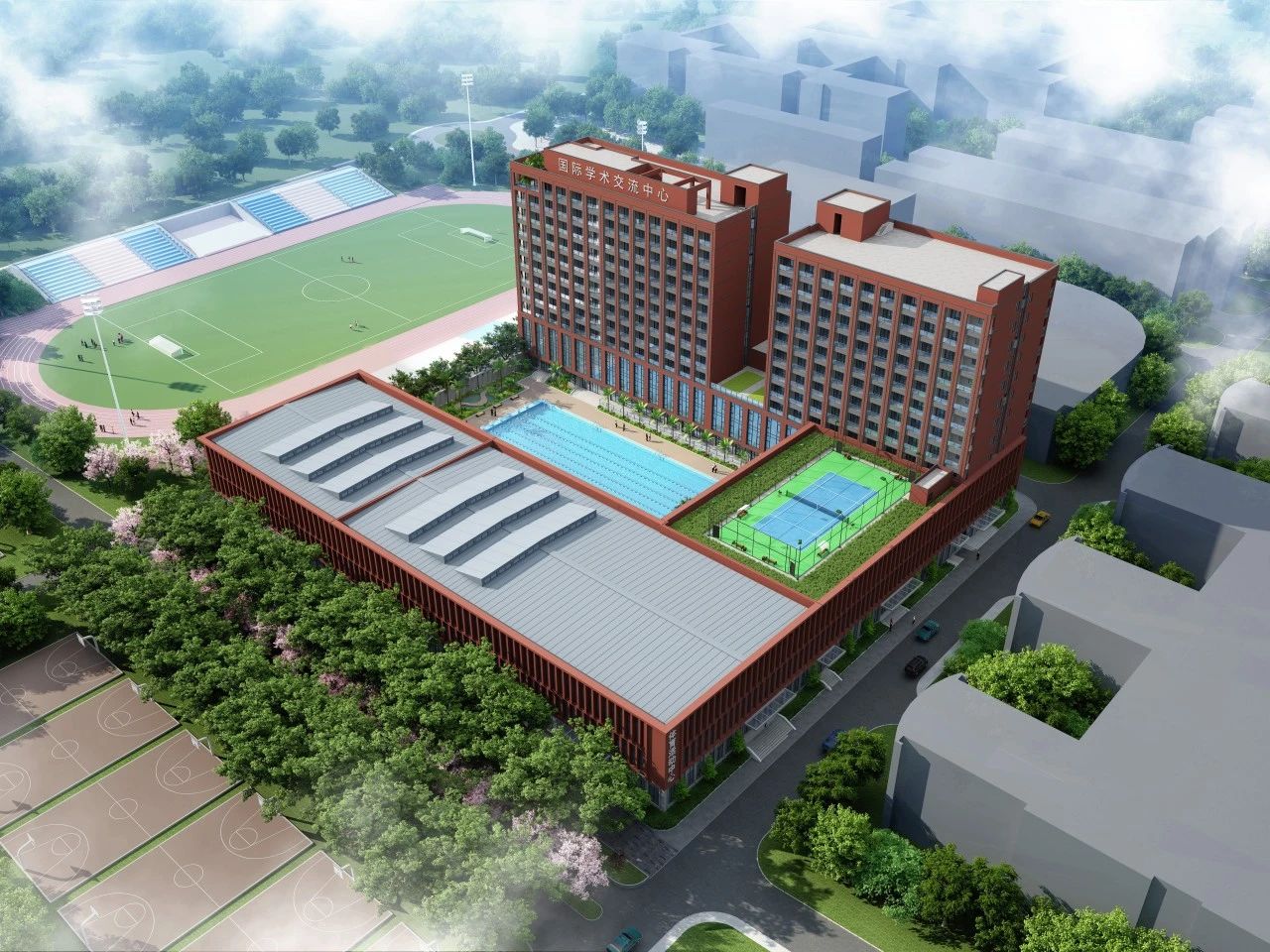 BBV电子体育体育中心总建筑面积约3.8万平方米,内含篮球馆、羽毛球馆、游泳馆、健美操馆、武术馆、台球馆、媒体发布中心、室内恒温泳池等八大场馆,配套客房、教室活动中心、自助餐厅等设施。建成后,可为华商师生员工提供优质的体育设施及住宿服务,提升华商在体育版块的综合实力。