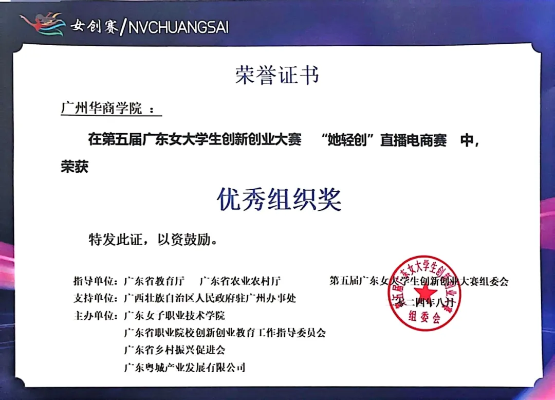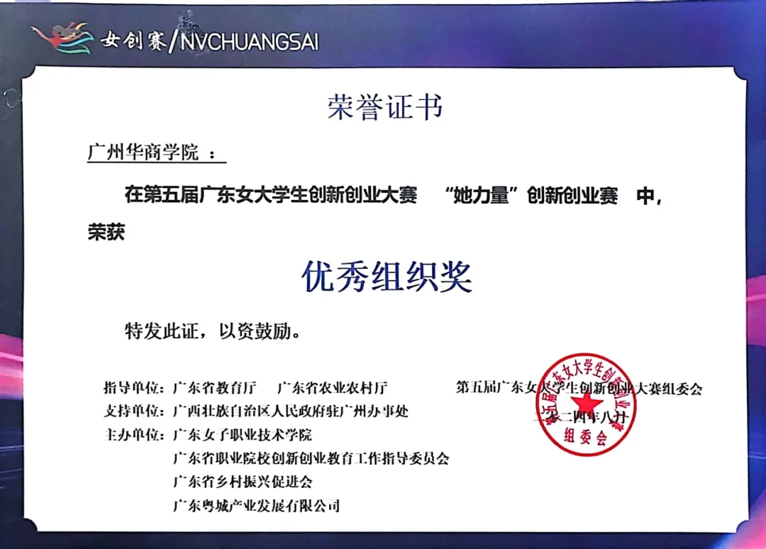 学校荣获“她轻创”赛道“优秀组织奖”