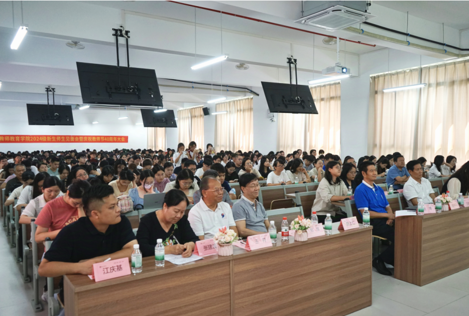 金风送爽,丹桂飘香。在这个满载收获与希望的季节里,教师教育学院2024级新生师生见面会暨庆祝教师节40周年大会于2024年9月10日在肇庆校区举行。教师教育学院全体领导、系部主任、教职工以及2024级全体新生齐聚一堂,共同欢庆这个意义非凡的日子。