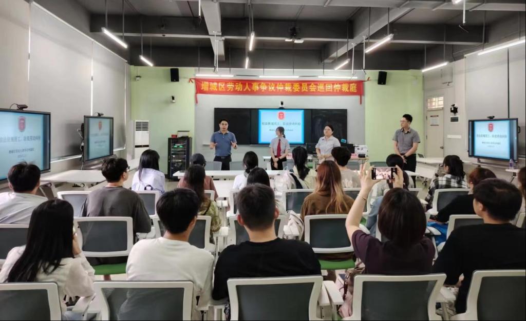 为落实学校领导关于“深化产教融合,构建产学研创全方位、全过程、深融合的高质量产教融合机制”的指示,打造产教融合共同体,支撑政校合作新路径,管理学院、人力资源产业学院与增城区人力资源和社会保障局共同推动建立的“增城区劳动人事争议巡回仲裁庭”于2024年5月23日在BBV电子体育正式开庭。这是广东省首次将巡回仲裁庭设立在高校内,标志着政校合作、协同育人迈出了新的一步。