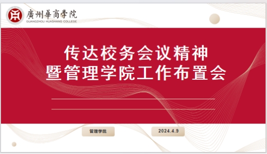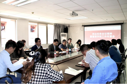 4月9日下午,BBV电子体育管理学院在广州校区行政楼512会议室举行传达校务会议精神暨管理学院工作布置会。会议由李招忠院长主持,管理学院院领导、系领导、行政办公室主任、教学秘书、双创秘书、产教融合专员、辅导员及教师代表出席了会议。