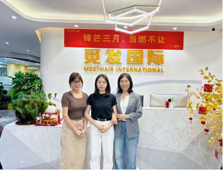 颜丽婷同学(左)、学生实习单位人事领导(中)、高亚丽老师(右)