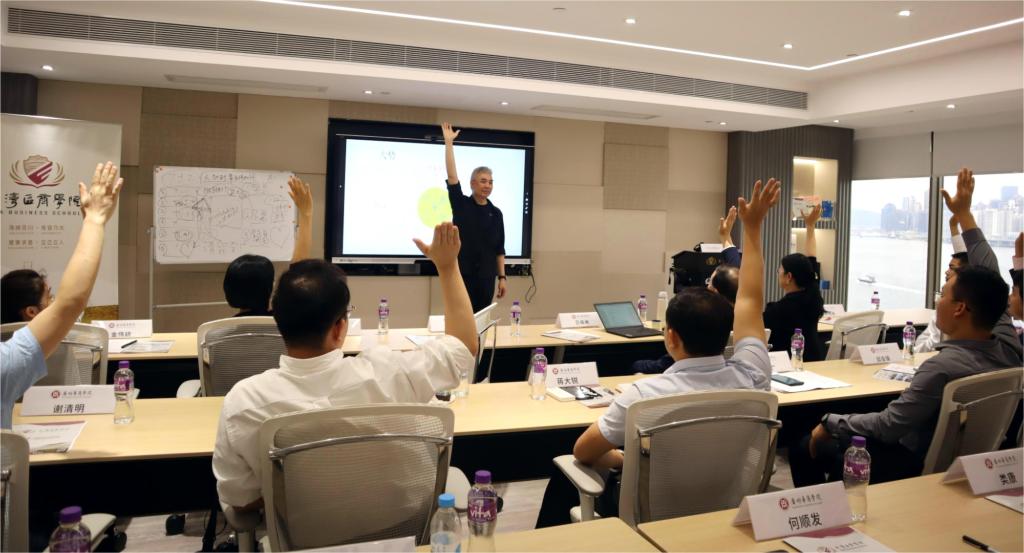 本次,考察团特别邀请了大湾区商学院高级顾问李灿荣博士做讲座。李灿荣博士分享了六个符号处理沟通问题,他结合大量案例,与考察团成员积极互动,现场气氛活跃,与李博士共同探讨如何高效、高质量与学生工作交流沟通,提升我校教师与学生沟通技巧。