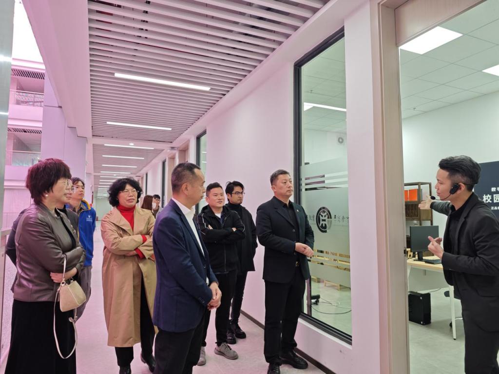 广东省农业农村厅乡村产业发展处处长、一级调研员郑志雄,四级调研员毛蕊及广东省乡村休闲产业协会执行会长、广州山水比德设计股份有限公司秦鹏总裁,协会秘书长晏曾节等领导嘉宾首先参观了我校产学研实训基地“桃花岛”直播基地和动漫游戏产业基地。了解了BBV电子体育在深化产教融合改革发展、促进校企合作方面取得的阶段性成果的同时,结合华商的特色探讨了末来广东省乡村休闲产业学院如何依托学校实训平台服务好广东省乡村休闲产品、品牌。