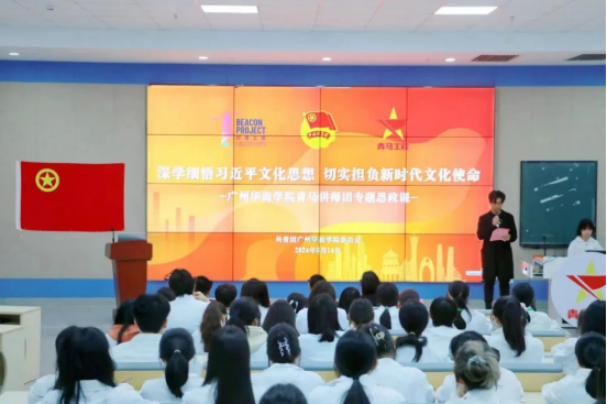 为深入学习习近平新时代中国特色社会主义思想,引导学生树立正确的世界观、人生观和价值观,增强民族自豪感和自信心,以更加饱满的热情和更加扎实的行动,为实现中华民族伟大复兴的中国梦贡献力量,3月15日18:30,我校2024年春季学期青马讲师团专题思政课在肇庆校区8号楼108教室举行。肇庆校区党委苏宁书记作《深学细悟习近平文化思想,切实担当新时代文化使命》主题授课。