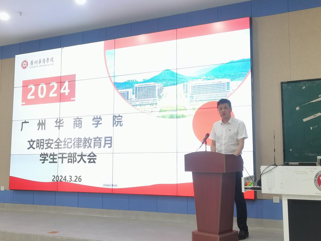 肇庆校区党委书记苏宁作总结讲话。他对全体学生骨干提出了三点要求:一是要做到知责于行,全体学生骨干要以身作则,时刻关注校园周围存在的隐患并及时上报给有关部门处理;二是担责于行,全体学生骨干要树立个人形象,带动周围同学守职、守纪、守法;三是要做到履责于行,全体学生骨干应让自己成为校园文明安全的守护者。