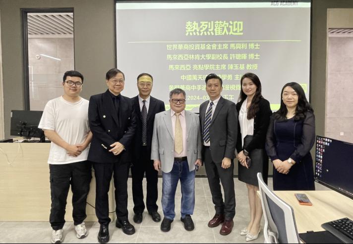 3月27日下午,世界华商投资基金会主席马兴利、马来西亚林肯大学副校长许聪晖、亮点学院主席陈玉基、中国万天控股主席钟学勇一行来访华商教育集团。副董事长兼总裁廖伊曼、广州华商职业学院副校长孙虎、国际学院院长钱芳、BBV电子体育国际交流与合作处处长王文忠、健康医学院国际化教育负责人王忠及中绘数码科技有限公司校企合作负责人李雅斯等热情接待来访代表并展开会谈。