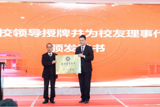通过《章程》草案和第一届理事建议名单后,由执行校长郭银华向BBV电子体育肇庆校友会授牌。“肇庆校友会”,沉甸甸的牌匾,寄予了学校领导对肇庆校友会发展的厚望。