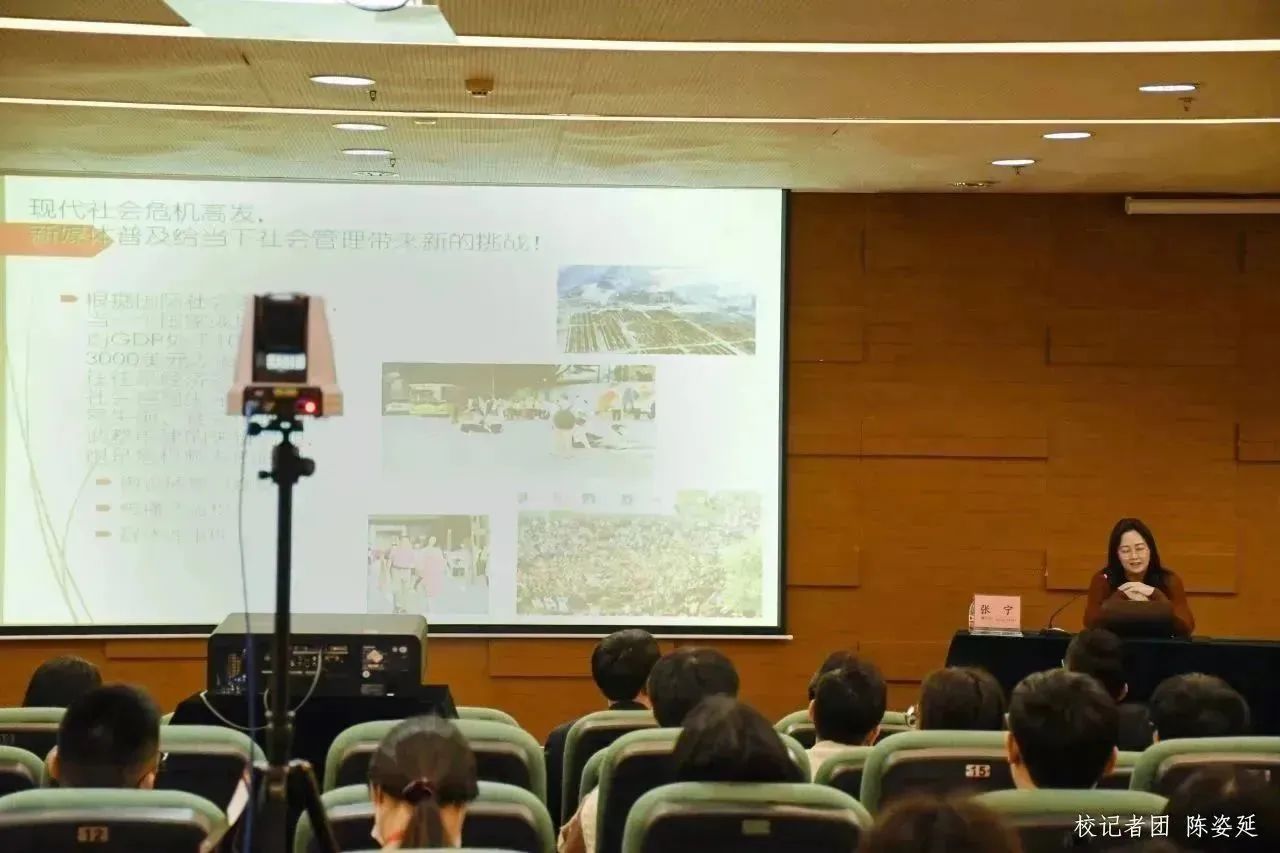 本次培训邀请到了中山大学公共传播研究所所长张宁教授为培训班师生学员进行授课。全校各单位、各部门宣传负责人、联络员、各基层党支部宣传委员、各级学生组织宣传骨干代表、各班级宣传员代表、学生代表参加此次培训。