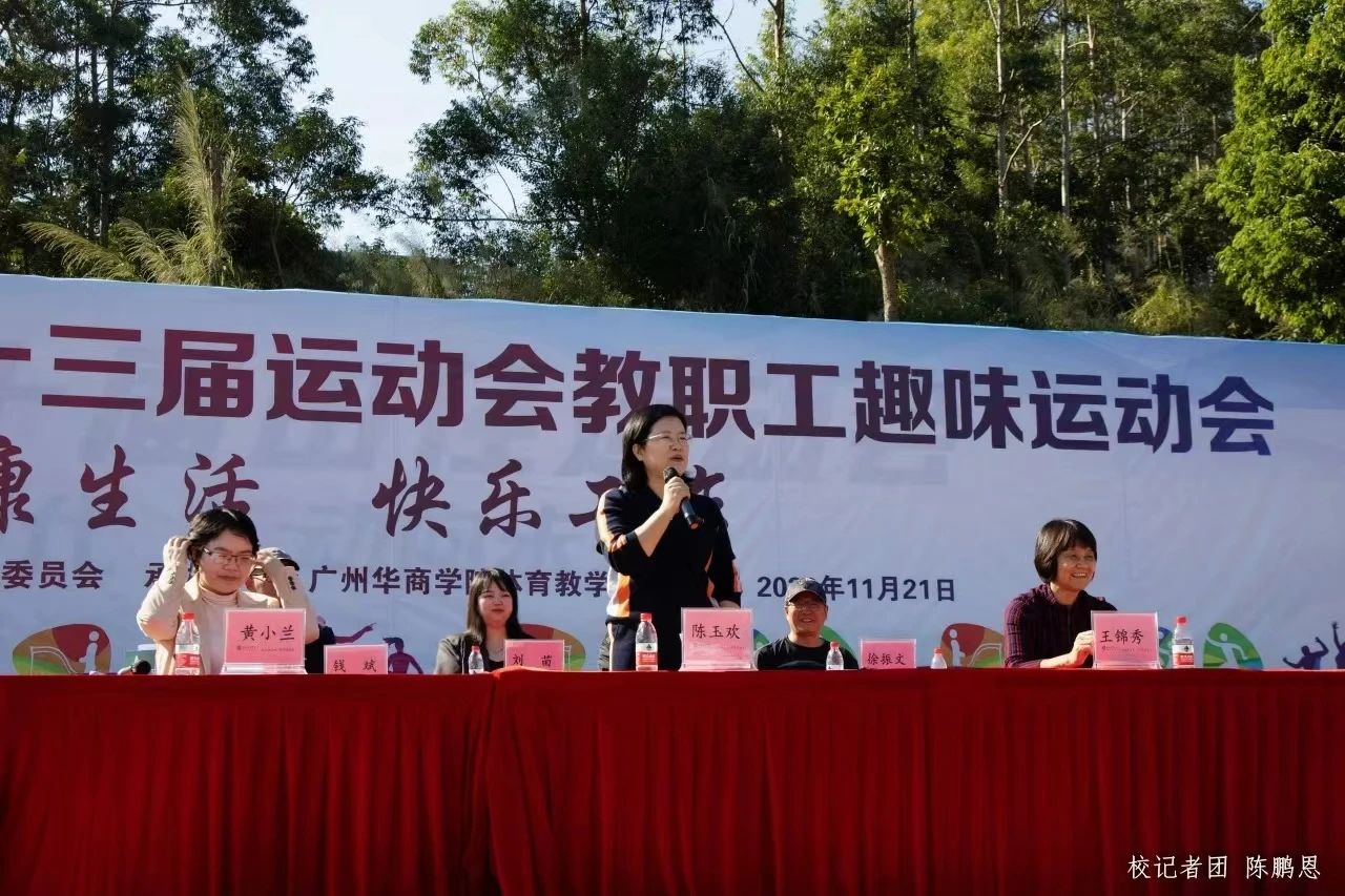 11月21日下午,BBV电子体育第十三届运动会教职工趣味运动会在广州校区西区操场举行。学校党委书记陈玉欢出席开幕式并致辞,副校长支戈壁出席闭幕式并致辞。副校长王锦秀,工会主席黄小兰、工会副主席钱斌及相关部门负责人出席开幕式。运动会由工会主席黄小兰主持。
