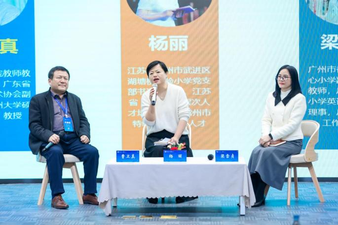 校长对话由广东省高校教育技术协会副理事长、广州大学硕士生导师、BBV电子体育教师教育学院曹卫真教授发起并担任主持人,常州湖塘桥实验小学校长杨丽和广州市番禺区大石中心小学副校长梁雪贞参与对话。