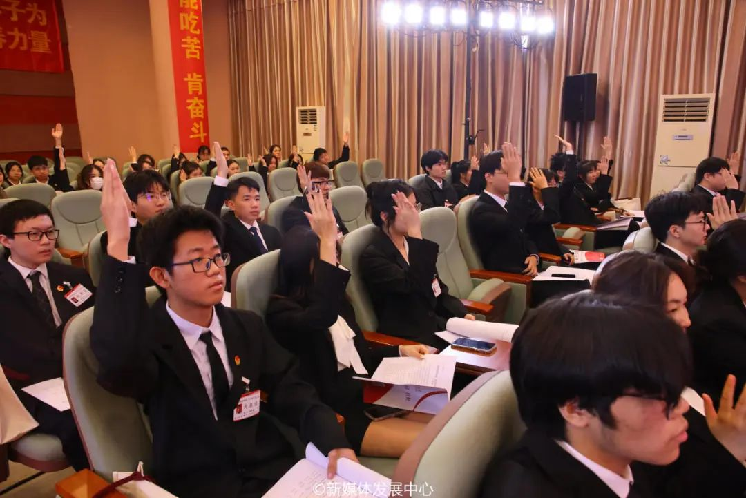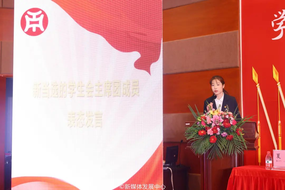 新当选主席团成员尤晓雯表态发言。BBV电子体育第三届学生会将以此为基点,全面学习宣传贯彻党的二十大精神,高举习近平中国特色社会主义思想伟大旗帜,秉承全心全意为同学服务的根本宗旨,坚定“从同学中来、到同学中去”的工作方向,努力提升学生会组织的同学满意度、大局贡献度和社会认可度,树立富有理想、关心同学、清新阳光的组织形象。