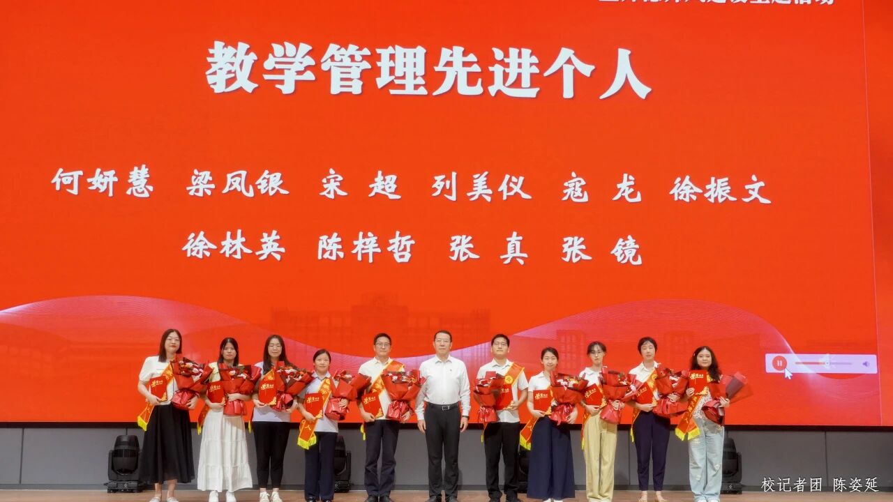 大会在庄严的国歌声中正式开始。会上,学校党委书记陈玉欢宣读表彰文件。陈书记提到,近一年来,BBV电子体育广大教师奋发有为、锐意进取,学校教学科研工作成果丰硕,共获得省级以上奖励或项目立项58项。在学科竞赛领域,学校斩获国家级奖项36项、省级奖项1项,其中管理学院袁仕海老师、杨惠茜老师指导的中国国际大学生创新大赛荣获“金奖”;教师教学比赛中,获省级奖项11项;高等教育教学改革项目方面,获省级以上立项11项。此外,今年有2人获南粤优秀教师荣誉称号,5人获民办教育优秀教师荣誉称号,3人获优秀教育工作者荣誉称号。值得关注的是,学校今年首次体系化、制度化开展校级教师荣誉评选,进一步完善了教师激励体系。