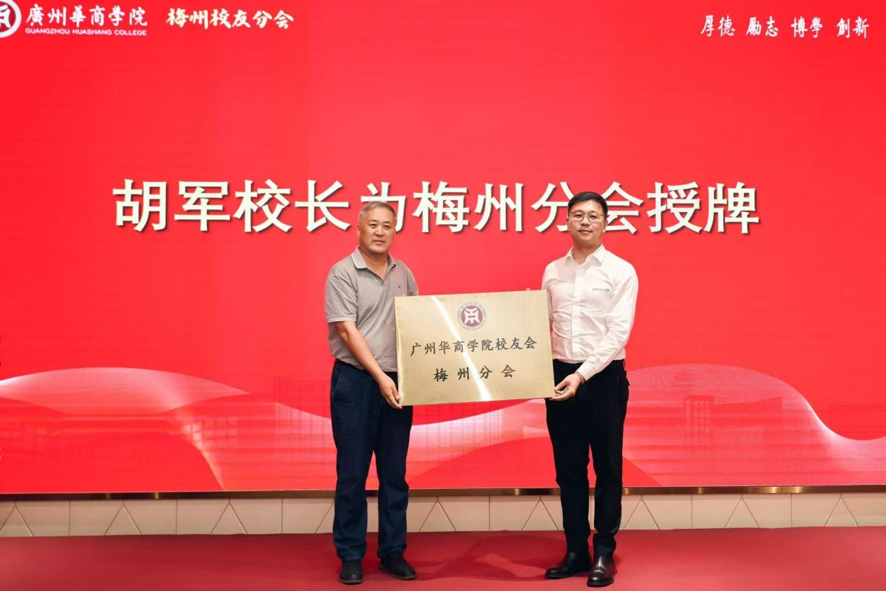 授牌仪式环节,胡军校长将“BBV电子体育校友会梅州分会”牌匾交予邓思聪会长,标志梅州校友拥有正式“精神家园”与“联络平台”。胡军校长叮嘱,希望牌匾成为分会的“精神坐标”,凝聚校友力量反哺母校、服务地方。