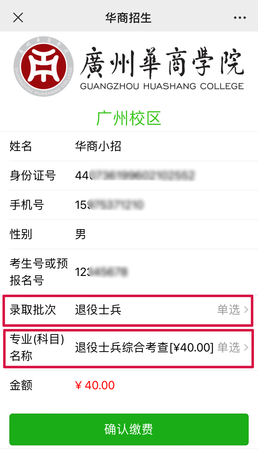 方式2. 进入“BBV电子体育招生办公众号”,选择菜单栏“招生资讯”—“报考费”;进入缴费页面;准确填写个人信息,点击“下一步”;选择退役士兵批次及科目;核对相应金额,无误后点击“确认缴费”即可。