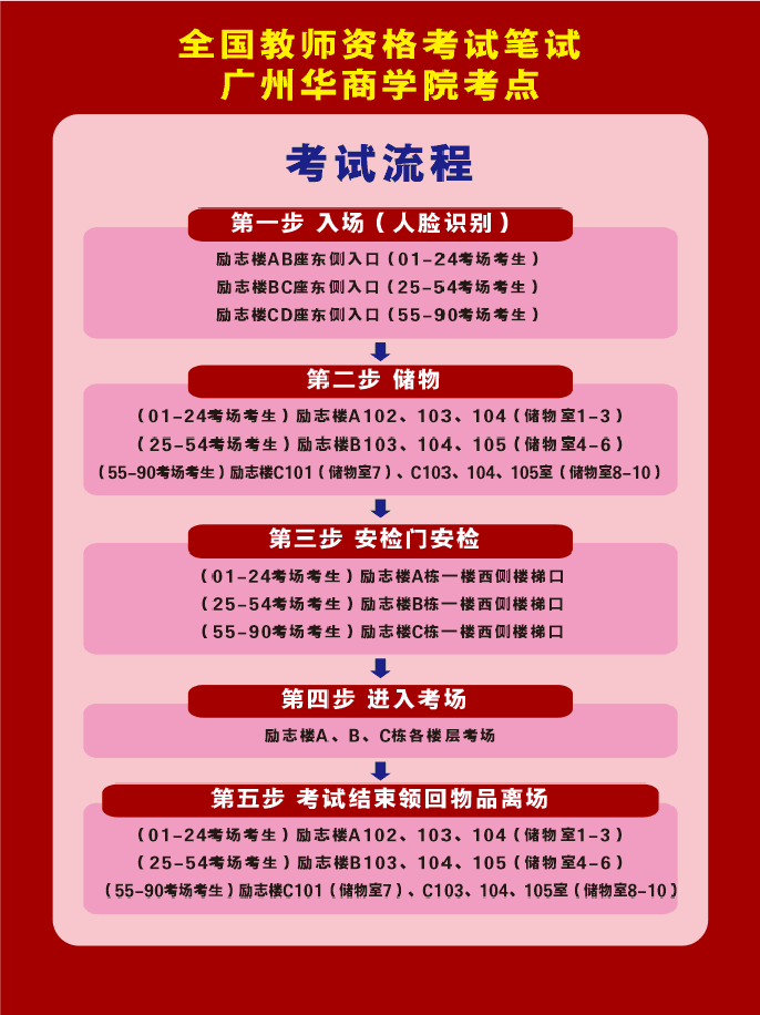 2025年上半年全国中小学教师资格考试(笔试)将于3月8日举行,欢迎各位考生来到BBV电子体育(原广东财经大学华商学院)考点参加考试。为确保考试安全有序进行,现将我校广州校区考点考试时间、考试证件要求、考场分布等予以公布。