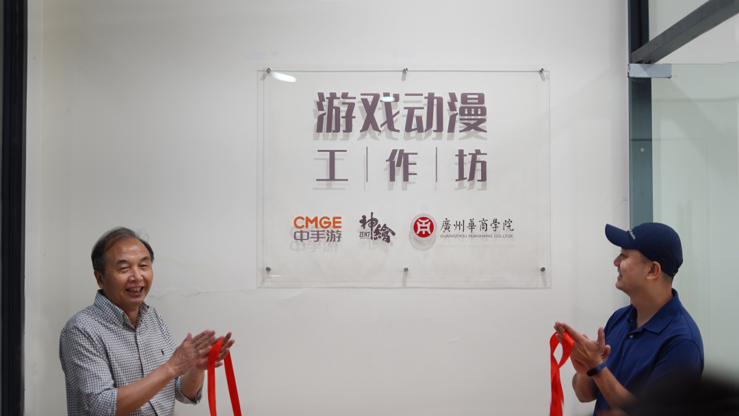揭牌仪式结束后,双方召开合作交流座谈会。会上,湛素丹、程海涛等负责人分别从“华商-中手游神绘杯设计大赛”的进展情况、动漫游戏工作坊的推进工作等方面详细汇报了合作内容。