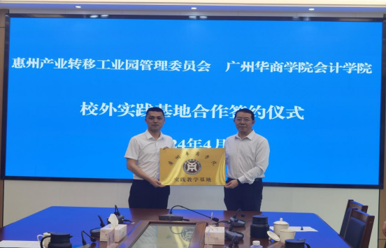 姚凤民院长从为工业园提供服务,开展财务会计的公益讲座等方面提出实践基地发展的期望。姚凤民院长和谢帆宇副主任代表校企双方签署了《BBV电子体育校外实践基地合作协议书》。吕峻闽副校长为惠州产业转移工业园管理委员会授予“BBV电子体育实践教学基地”牌匾。