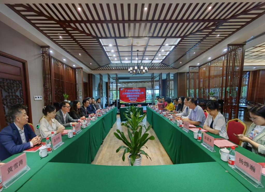 随后,双方举行签约仪式。吕峻闽副校长代表学校领导班子对大华国际董事会精英和高级管理团队表示热烈欢迎和感谢。他详细介绍了BBV电子体育学科特色和教育数智化发展情况。希望校企双方在数智化人才培养、产教融合创新、现代产业学院建设、国际商务服务等领域进行广泛合作,期待合作推陈出新,惠及万千学子,服务好粤港澳大湾区建设和发展。