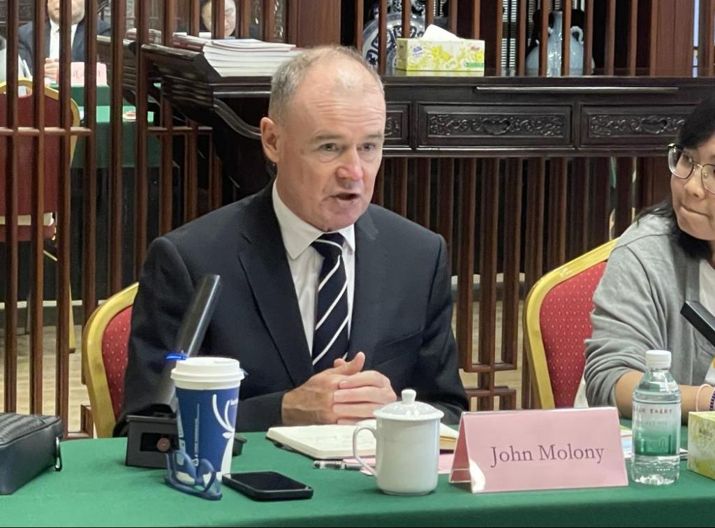 John Molony副校长对胡校长的接待表示感谢,高度肯定了我校在国际交流与合作方面所取得的进展,并期待两校能够在联合人才培养项目、本升硕项目、师生交流等方面开展实质性合作。