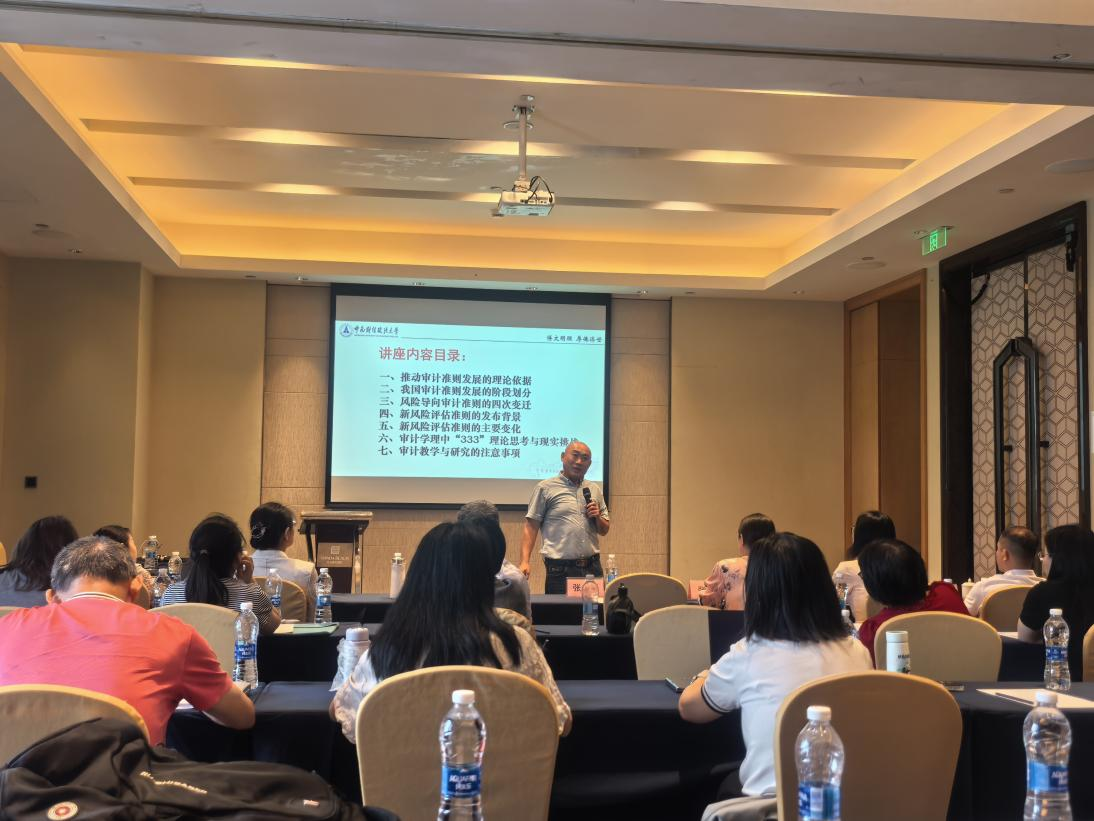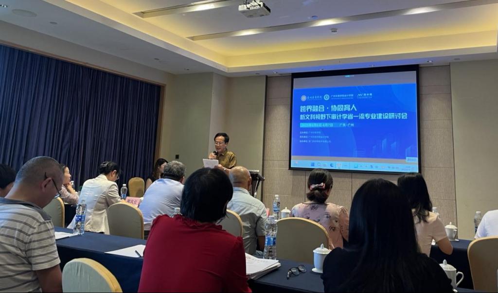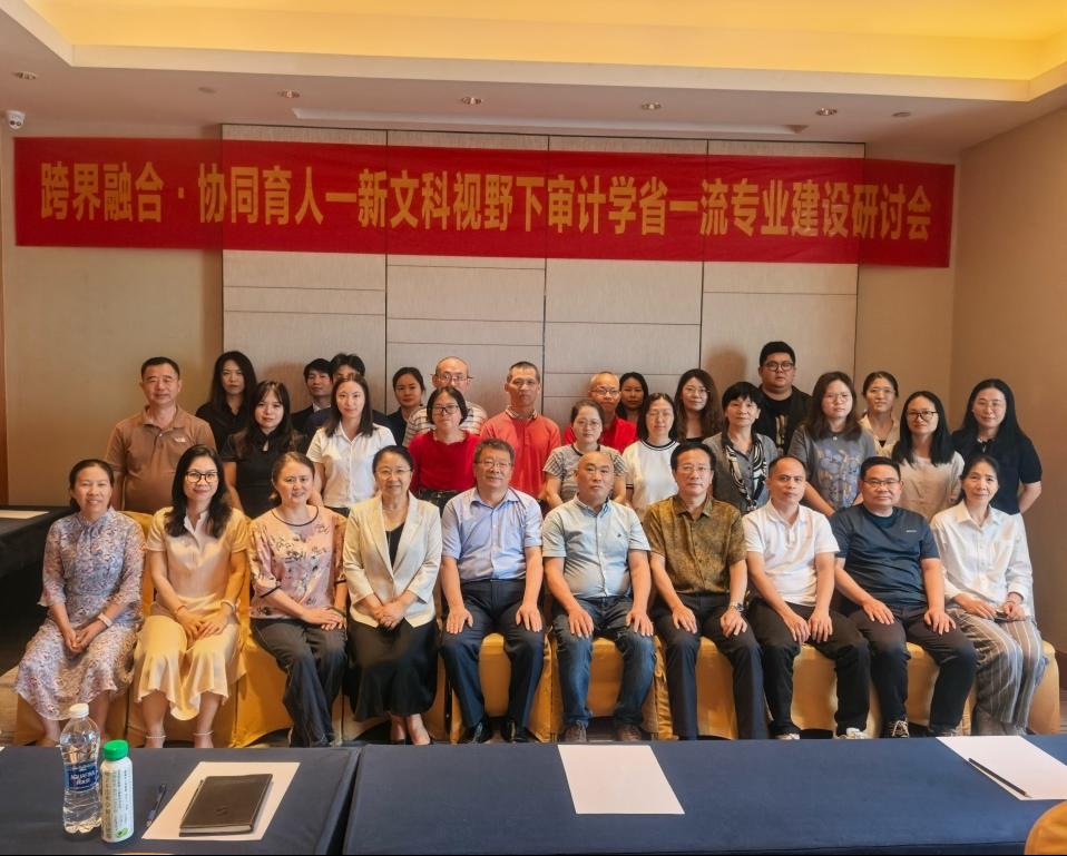 为推动我校审计学省一流专业建设,提升专业建设质量,培养适应时代需求的审计专业人才,2025年6月6日-7日,会计学院召开“跨界融合·协同育人”新文科视野下审计学省一流专业建设研讨会。会议邀请了中南财经政法大学会计学院原院长张龙平教授、广东外语外贸大学会计学院原院长刘中华教授、广东财经大学会计学院原院长邢风云教授、广东轻工职业技术大学罗小凤主任以及广东财经大学会计学院张阳教授等专家学者参会。