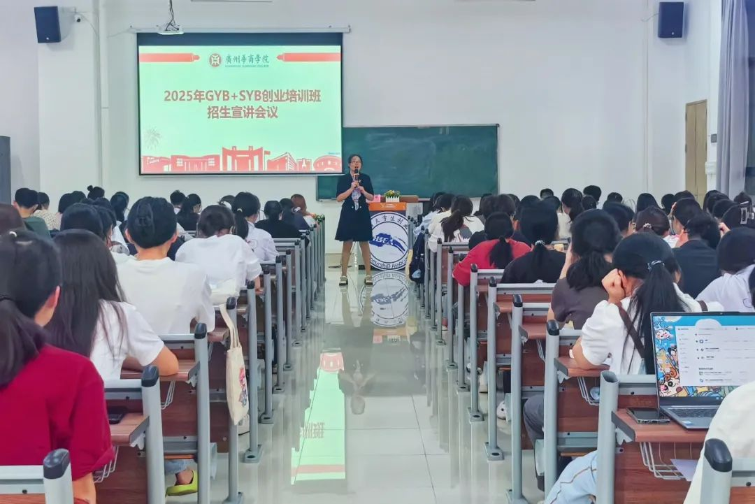 为培养学生的创新精神和创业意识,提升创新创业能力,激发创新创业热情,2025年6月10日,由广州市增城区人力资源和社会保障局指导,BBV电子体育就业创业e站主办,BBV电子体育学生就业创业处、BBV电子体育创新创业学院、华商众创孵化基地承办,BBV电子体育大学生创业协会协办的2025年GYB和SYB创业培训班招生宣讲会在广州校区励志楼C308、肇庆校区6号楼205同步举行。