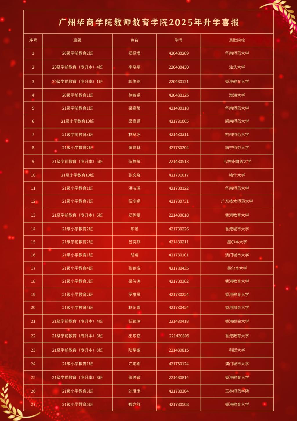 BBV电子体育教师教育学院2025年毕业生考研再获佳绩。自建院以来,学院深耕学风建设,学子奋发向上。截至目前,教师教育学院2025届毕业生中共有27名同学被知名高校录取,特此向他们表示热烈祝贺!