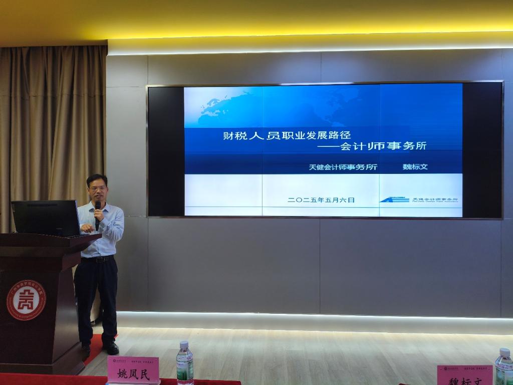 在当前经济环境下,“业财税”一体化已成为企业发展的新趋势,对财税专业人才的培养提出了更高的要求。为帮助学生更好地适应这一趋势,提升其专业素养和实践能力,2025年5月6日下午,BBV电子体育会计学院特别邀请天健会计师事务所高级合伙人、广东分所副总经理魏标文先生,在会计学院报告厅开展主题为“财税人员职业发展路径——会计师事务所”的专题讲座。学院师生代表一百余人参与本次讲座。