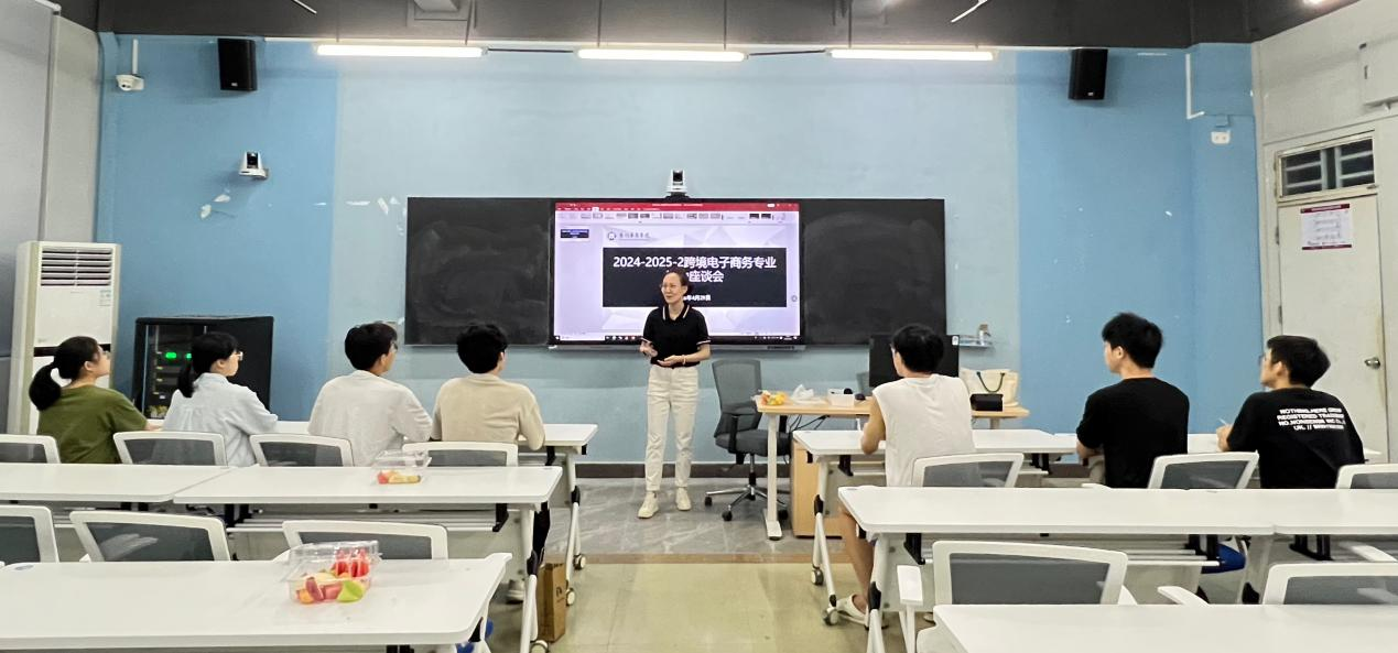 2025年4月29日,数字经贸学院跨境电子商务系在励志楼D203召开广州校区学生座谈会。此次座谈会由跨境电子商务系主任曹维与副主任杨于昕组织召开,22级跨境电子商务班、22级跨境电子商务专升本一班、二班的班委及学生代表参加座谈会。