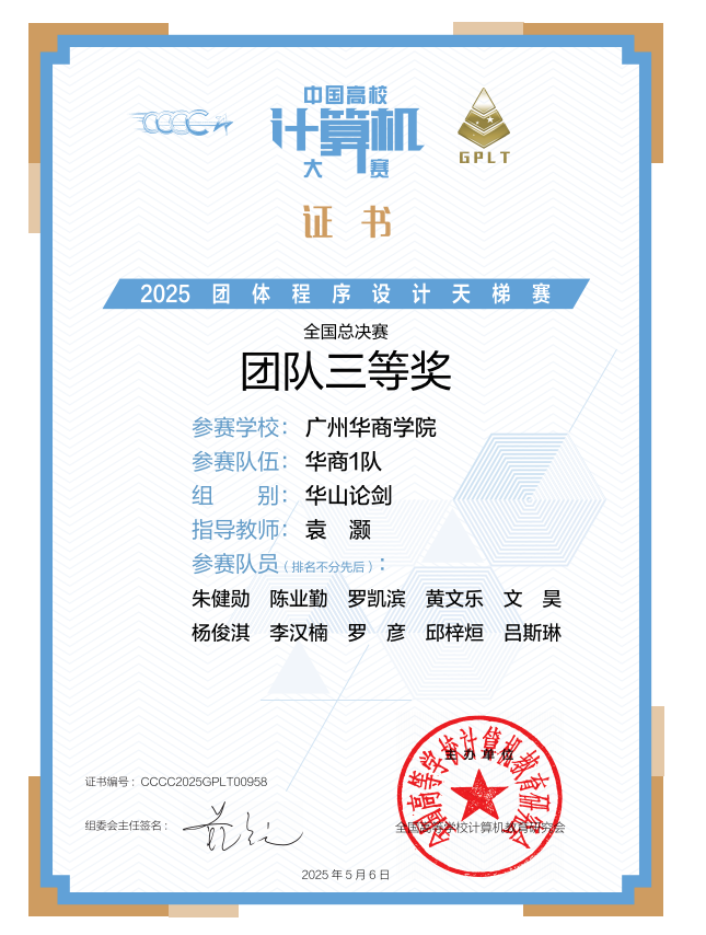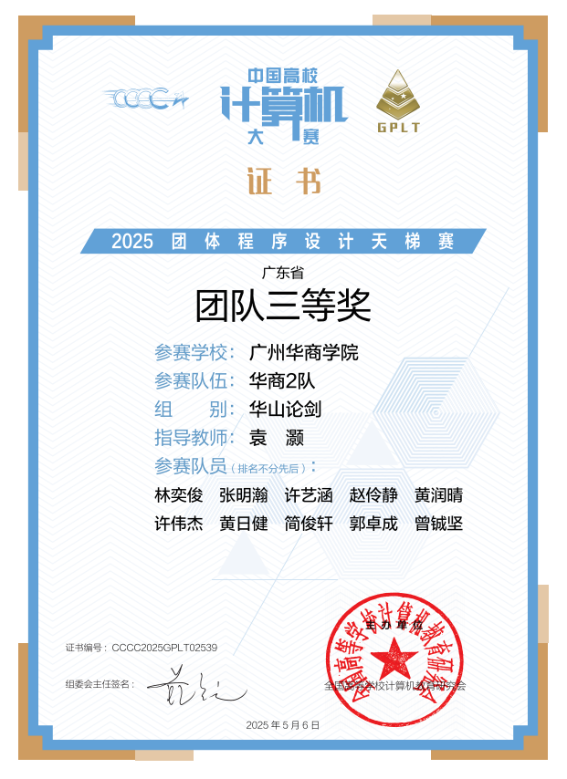 (CCC-GPLT全国总决赛团队三等奖、CCC-GPLT广东省团队三等奖)